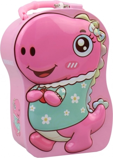 Deze dinosaurussen-spaarpot is ideaal voor kinderen vanaf 3 jaar, gemaakt van metaal met afmetingen van 18 x 12 cm, wat zowel duurzaamheid als lichtheid garandeert.