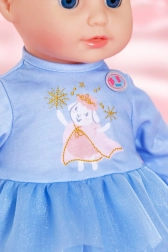 Stijlvolle winterkleding voor poppen van 36 cm, met een blauwe jurk met lange mouwen, een gelaagde tule rok en een fluweelzachte bodywarmer. Dankzij de eenvoudige snit is aankleden ook voor de allerkleinsten gemakkelijk. De set in speelse pasteltinten brengt een magische winterlook, comfortabel aankleden en veel creatieve speelpret.