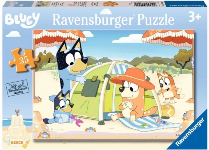 Bluey-puzzel op het strand met 35 stukjes van Ravensburger voor plezier en de ontwikkeling van kinderen.