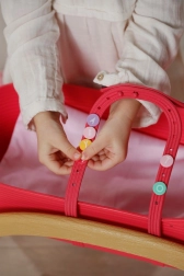 Kleurige knoppen klik je eenvoudig op de handgrepen en de rand van de mand. Zo kunnen kinderen het bedje steeds weer personaliseren en hun fantasie prikkelen.