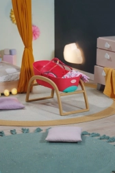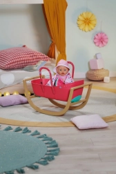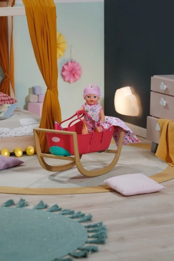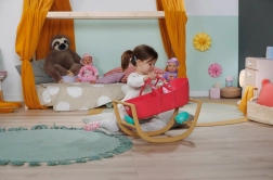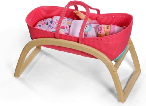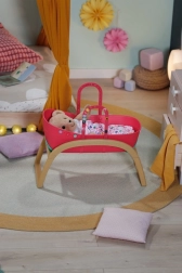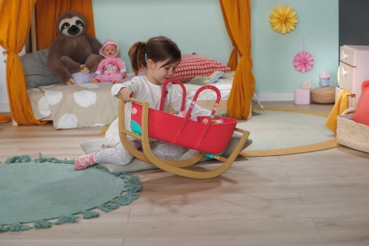 Ontdek het praktische 3-in-1 bedje voor BABY born-poppen dat meegroeit met de verbeelding van kinderen. In een handomdraai verander je het van een elegante wieg in een draagmand met geïntegreerde handgrepen of in een stabiel kinderbedje. Het lichte plastic bakje in combinatie met de stevige schommelbasis met houtlook maakt dragen gemakkelijk en zorgt voor veilig, soepel schommelen.