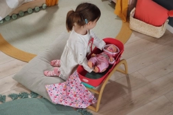 Eén speeltje dat je naar wens kunt ombouwen – van draagmand met handgrepen naar een stevig bedje of een rustgevende wieg met vloeiend schommelen.