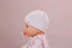 Annabell van 43 cm heeft een zacht lijfje, ideaal om te knuffelen en zacht te spelen. De interactieve technologie zorgt voor natuurlijke reacties – bij het zuigen aan de fopspeen of drinken uit het flesje beweegt ze haar mondje en sluit of opent ze haar ogen afhankelijk van de situatie. Dankzij het kalmerende wiegen kun je haar gemakkelijk in slaap wiegen in twee richtingen.
