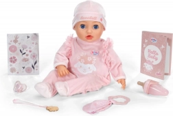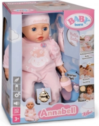 Maak kennis met de pop BABY born Annabell 43 cm – een heerlijk zachte vriendin voor dagelijks spelen en knuffelen. Dankzij de elektronische functies beweegt ze haar mondje realistisch, doet ze haar ogen open en dicht, reageert ze op een fopspeen en drinken uit het flesje, kan ze in slaap worden gewiegd en verrast ze met grappige geluidjes bij kietelen of “baby-gym”.
