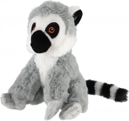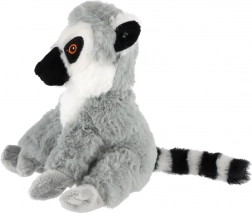 Deze zittende pluchen ringstaartmaki vangt trouw de charme van de Madagaskische maki – van de zachte grijs-witte vacht tot de iconische gestreepte staart. Dankzij het compacte formaat van 15 cm is hij ideaal voor in het babybedje, de kinderwagen en onderweg.