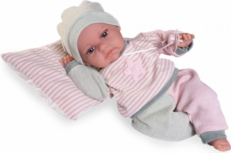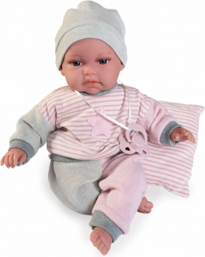 Ontdek de magie van moederlijke zorg met de realistische pop Antonio Juan Toneta. Deze Spaanse pop heeft de mogelijkheid om geluiden te maken die lijken op babygebrabbel, wat het spel realistischer maakt. Dankzij het zachte stoffen lichaam is ze ideaal voor de armen van kleine babysitters.