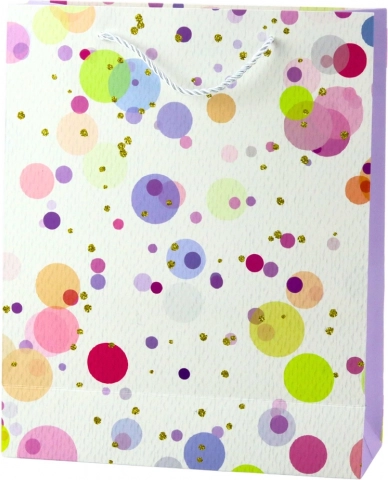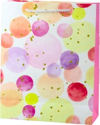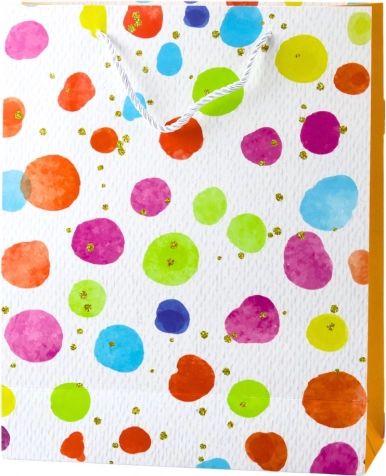 Stijlvolle en praktische cadeautas met een artistiek patroon van aquarelstippen, ideaal voor diverse gelegenheden. Dankzij het hoogwaardige gelamineerde papier en de comfortabele koordhandvatten is hij niet alleen esthetisch, maar ook duurzaam.