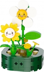 Ontdek een bouwset die het speelse element combineert met een decoratieve functie. De set toont vrolijke bloemen met een glimlach, perfect als cadeau of decoratie voor een bureau, plank of kinderkamer.