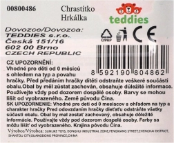De rammelaar is licht en de vorm is gemakkelijk vast te houden door kleine handjes, wat de ontwikkeling van de fijne motoriek en het gehoor stimuleert. Het schattige design zal elk kind aanspreken en het zachte geluid vermaakt en kalmeert.