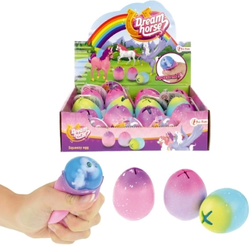 Knijpei ei/slijm met eenhoorn anti-stress rubber 6 cm 3 kleuren 12 stuks in doos