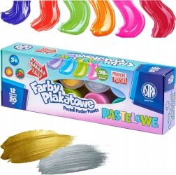 De set pastelkleurige plakkaatverf van ASTRA biedt 12 subtiele tinten van 20 ml, inclusief 2 metallic tinten. De verven zijn met water verdunbaar, hebben een hoge dekkracht, een matte afwerking na droging en lichtechtheid – ideaal voor school en thuis creatief werk.