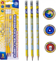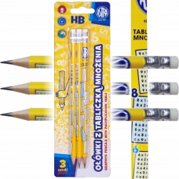 Set van drie ASTRA-potloden met hardheid HB en een praktische tafelsopdruk die leren en schrijven vergemakkelijkt. Ze hebben een ergonomische driekantige vorm voor een comfortabele grip, een hoogwaardige stift van 2,2 mm en een praktische gum aan het uiteinde. Het hout is afkomstig uit duurzaam beheerde bossen.