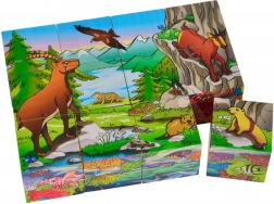Klassieke set voor kleine bouwers: 12 houten blokken vormen samen 6 verschillende motieven. Inclusief 6 voorbeelden voor makkelijker leggen. Gemaakt van berkenhout, ideaal voor kinderen vanaf 3 jaar. Afmeting van de voltooide afbeelding 16 × 12 cm.