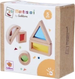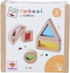 Ontdek de wereld van kleuren en vormen met de Montessori sensorische blokken van EICHHORN. Deze vijfdelige set van FSC-gecertificeerd beukenhout biedt gekleurde acrylvenstertjes en een element met spiegelfolie, die het visuele waarnemen, de fijne motoriek en de nieuwsgierigheid van kinderen vanaf 1 jaar stimuleren.