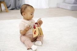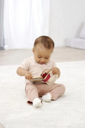 De praktische bevestigingsring maakt het mogelijk het boekje veilig mee te nemen en vast te zetten aan de kinderwagen of in het autostoeltje. Het is gemaakt van 100% lindehout met FSC-certificaat en voldoet zo aan de eisen voor een kwalitatief en duurzaam speeltje voor de allerkleinsten vanaf 12 maanden.