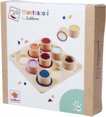 Dit Montessori voelbord is ontworpen om kinderen te motiveren actief te verkennen en verschillende oppervlakken en texturen te vergelijken. Negen afzonderlijke cilinders bieden een rijke zintuiglijke ervaring die het tastbare waarnemen, de concentratie en de oog-handcoördinatie stimuleert.