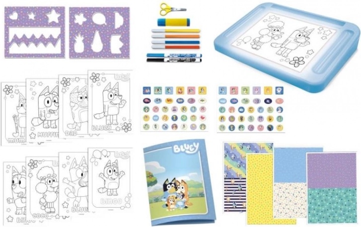 • sjablonen met Bluey-motieven en afbeeldingen