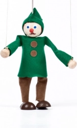 De bedieningsdraden zorgen voor vloeiende armbewegingen, zodat kinderen snel de basis van poppenspel onder de knie krijgen en hun eigen verhalen kunnen maken.