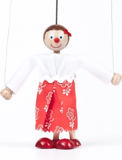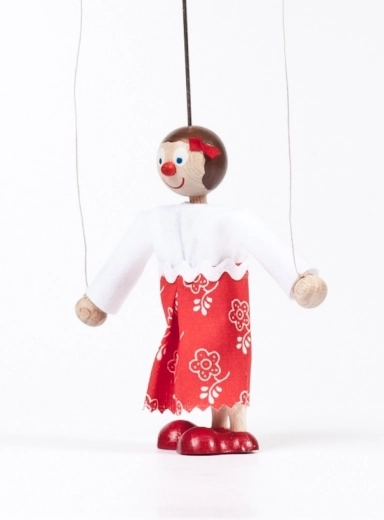 Ontdek de magie van traditioneel poppenspel met het figuurtje Maruška. Deze handgemaakte houten marionet wordt vervaardigd in een sociale werkplaats en valt op door de zorgvuldige afwerking. Dankzij de geleidedraden beweegt u gemakkelijk haar armen en brengt u elke scène tot leven.