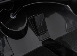 Het interieur met bekleding van eco-leer met velours afwerking en twee afzonderlijke stoelen zorgt voor comfort. De driestaps stoelverstelling past zich aan de groei van kinderen aan. Het multimediapaneel met FM-radio, MP3, USB, AUX en Bluetooth zorgt voor vermaak; stuurgeluiden en claxon ontbreken niet, en de SPORT-modus levert motorgeluid bij het gas geven.
