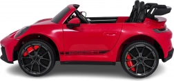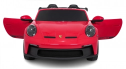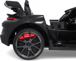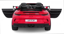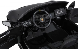 Stijlvolle elektrische kinderauto geïnspireerd op het model 911 GT3 met een krachtige 24V aandrijving, 4x200 W motoren, twee stoelen met veiligheidsgordels en LED-verlichting voor een realistische rit. Dankzij de zachte EVA-wielen, achtervering en 2,4 GHz afstandsbediening is de rit comfortabel en veilig, ook voor jongere bestuurders.