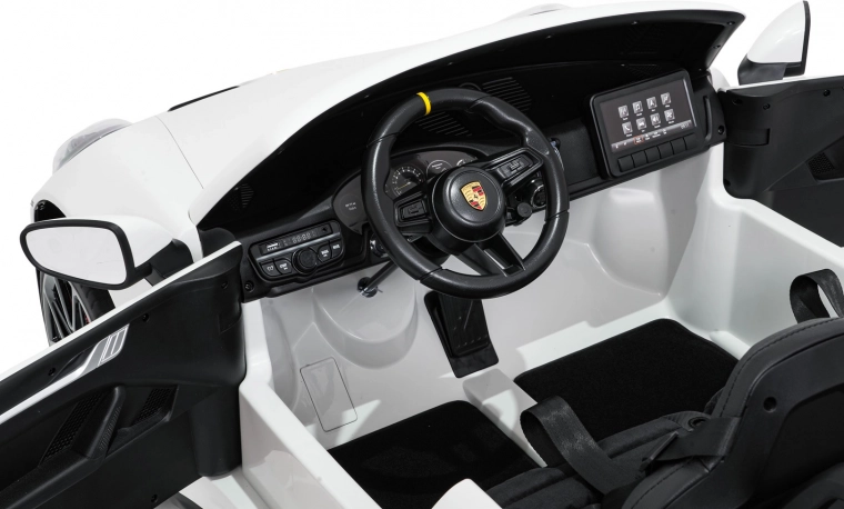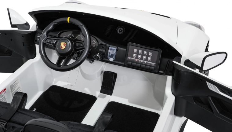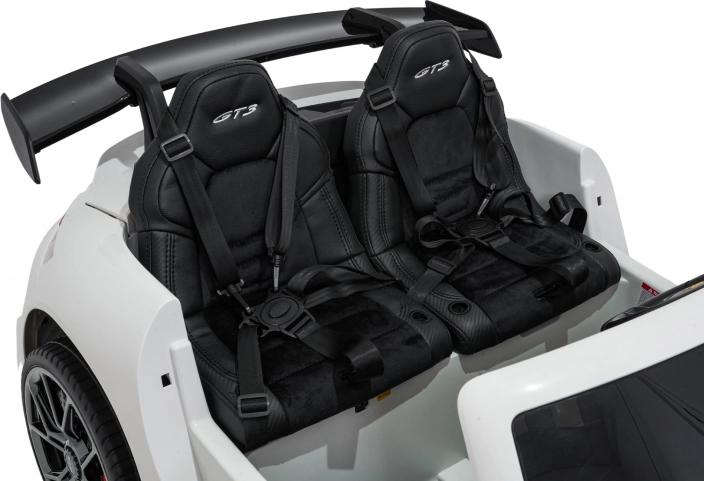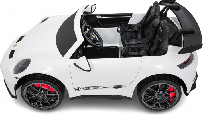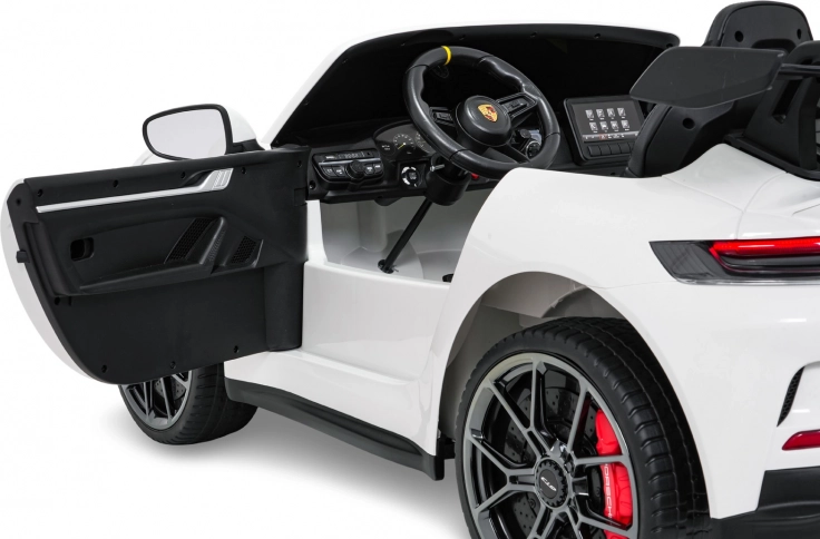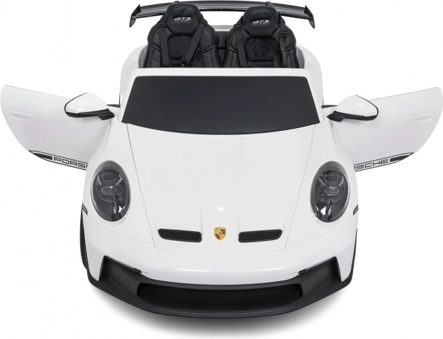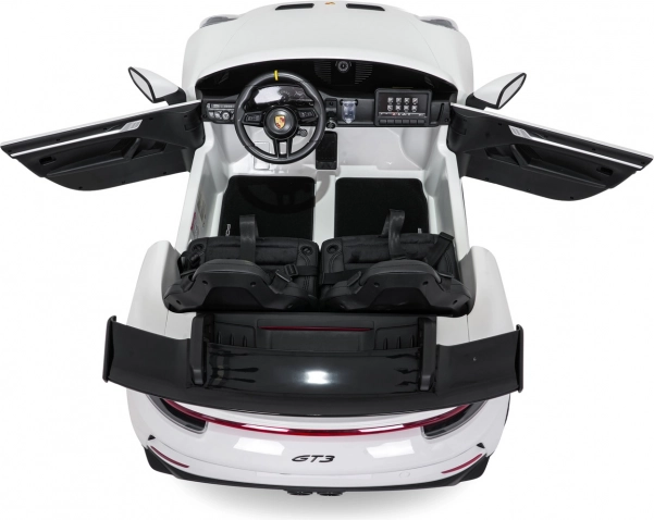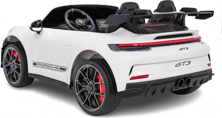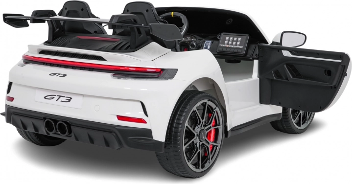 Vervul de kinderdroom van een sportwagen. Deze tweezits elektrische auto in de stijl van de PORSCHE 911 GT3 biedt realistische carrosseriedetails, sportstoelen met meerpuntsgordels en verlichte LED-koplampen. De krachtige 24V-accu met twee stille motoren 2×280 W zorgt voor een soepele rit, ook op langere trajecten, terwijl de zachte start en twee snelheden het comfort en de veiligheid verhogen.