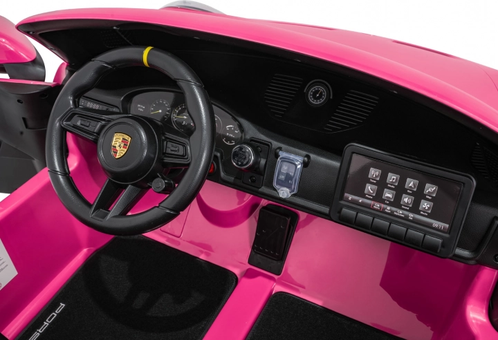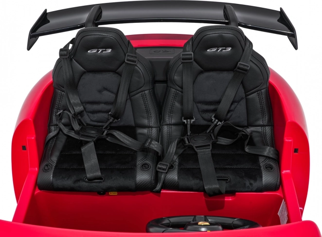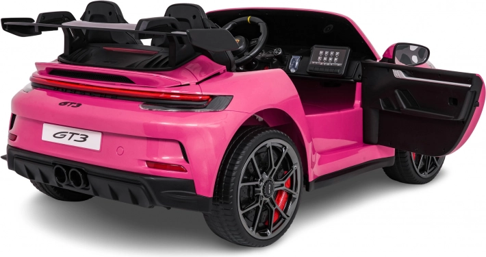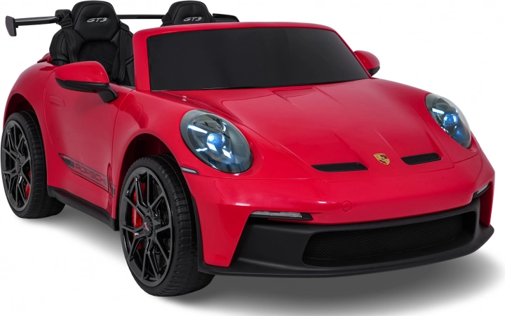 Stijlvolle elektrische kinderauto geïnspireerd op de 911 GT3 die een echte sportieve ervaring biedt voor kleine bestuurders. Voorzien van krachtige 2× 280W motoren, een sterke 24V 10Ah accu, zachte EVA wielen voor comfortabel rijden en onafhankelijke vering voor en achter. Dankzij LED-verlichting, openende deuren, twee zitplaatsen van eco-leer met gordels en een uitgebreide audiopaneel met FM, Bluetooth, USB en MP3 genieten kinderen van een veilige, comfortabele en leuke rit, terwijl ouders het 2,4 GHz afstandsbediening met Stop-knop zullen waarderen.
