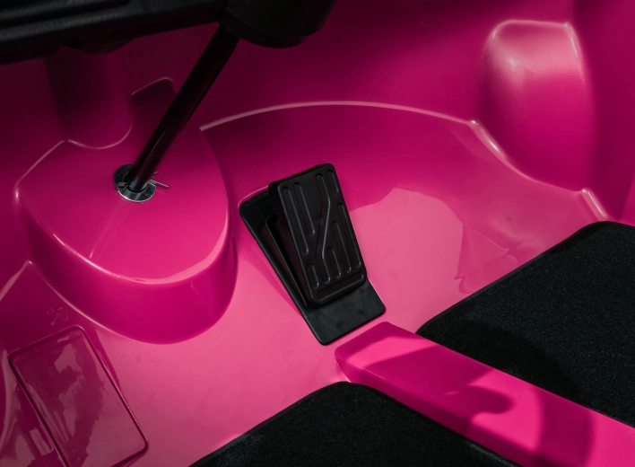 De dubbele zitplaats van eco-leer met velours afwerking, veiligheidsgordels en drievoudige stoelverstelling bieden comfort voor twee kinderen. Het uitgebreide multimediapaneel met FM-radio, Bluetooth, USB, AUX en voorgeprogrammeerde melodieën wordt aangevuld met stuurwielgeluiden en de “SPORT”-modus voor realistische geluidseffecten bij het gasgeven.