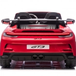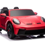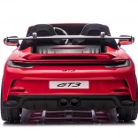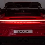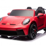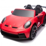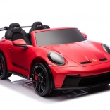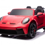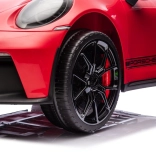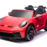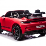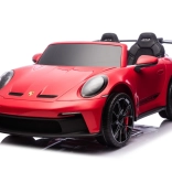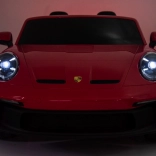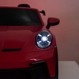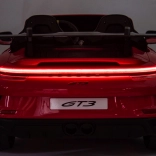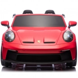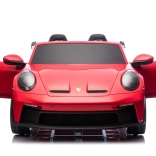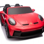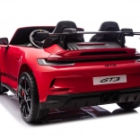 Grote tweezits elektrische kinderauto in de stijllicentie van de PORSCHE 911 GT3 met topuitrusting en veilige fun. Twee krachtige motoren 2×280 W in combinatie met een 24 V 10 Ah accu zorgen voor een soepele start en rijden vooruit/achteruit met 2 snelheden. Zachte EVA-banden en vering op voor- en achteras verwerken oneffenheden en langere ritten.