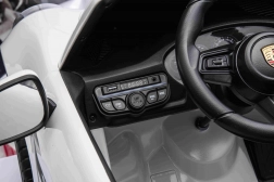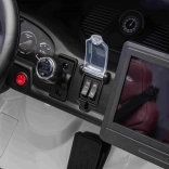 Ouders waarderen de veilige 2,4 GHz-afstandsbediening met 3 snelheden en een noodknop STOP. De rijke uitrusting omvat LED-verlichting, een duidelijke laadindicator en een modern audiopaneel met “SPORT”-modus dat authentieke geluiden toevoegt bij het geven van gas.