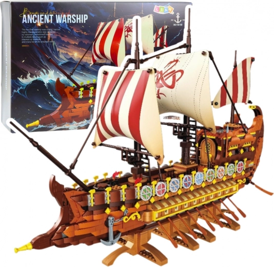 Het natuurgetrouw uitgewerkte model, geïnspireerd op antieke oorlogsgaljoenen, levert zowel een authentieke uitstraling als een rijke bouwervaring. Je vindt er lange rijen roeiriemen, realistische masten met zeilen, decoratieve schilden langs de romp en een opvallend vormgegeven dek met bewapeningselementen. De bouwset bevordert geduld, concentratie en fijne motoriek en zal dankzij de doordachte constructie ook veeleisende modelbouwers bekoren.