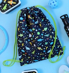 Lichte en praktische kindersportzak met ruimtemotief van A Little Lovely Company, ideaal voor school, clubs en uitstapjes. Dankzij het trekkoord opent en sluit hij gemakkelijk, binnenin zit een ritsvak voor het veilig opbergen van kleinigheden. Gemaakt van duurzaam 100% polyester, afmetingen 32 × 42 cm.