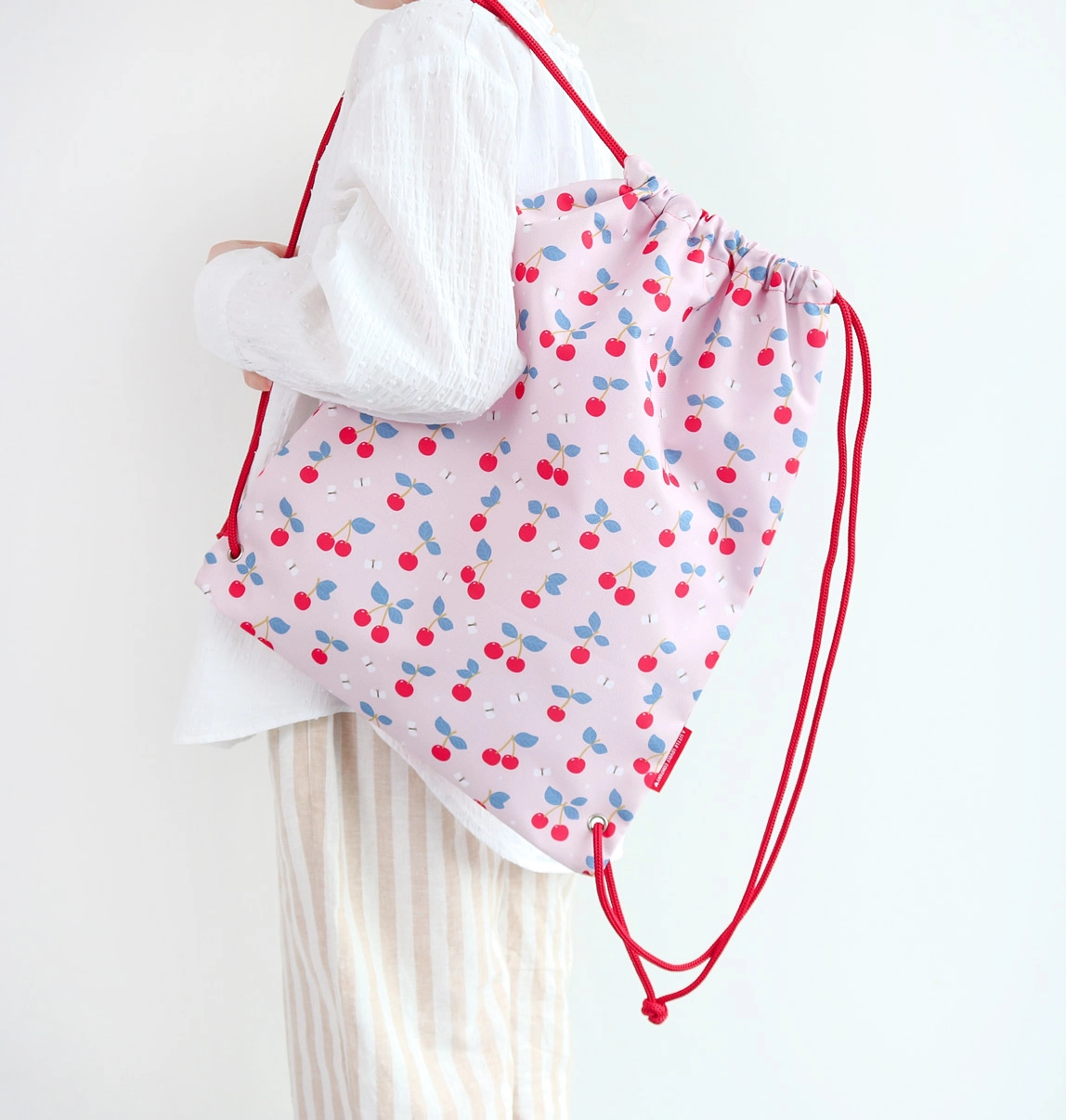 Stijlvolle rugzakzak met kersenprint is een betrouwbare metgezel voor school, hobby’s en zwemmen. Hij is licht, gemakkelijk te dragen en kinderen trekken hem moeiteloos dicht en weer open. Binnenin vind je een praktisch ritsvak voor sleutels, muntjes of andere waardevolle spulletjes.