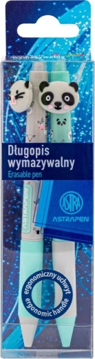 Set van 2 uitwisbare pennen ASTRA met dierenmotief. Uitwisbare inkt, gum aan het uiteinde en ergonomische greep voor comfortabel, foutloos schrijven voor school en kantoor.