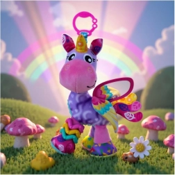 De schattige eenhoorn Stella van Playgro is een superzacht hangspeeltje voor de allerkleinsten, dat de zintuigen stimuleert en vermaakt, zowel onderweg als thuis. Het biedt een spiegeltje voor zelfontdekking, knisperende en rinkelende elementen, verschillende texturen en contrasterende patronen ter stimulatie van zicht, tast en gehoor. Dankzij de praktische C-clip bevestig je het eenvoudig aan de kinderwagen, autostoel of het ledikant.