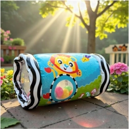 De cilindrische vorm rolt gemakkelijk, moedigt de baby aan om te reiken, zich om te rollen en te kruipen, en ontwikkelt zo de grove motoriek en coördinatie.