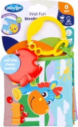 Licht en leuk hangboekje van PLAYGRO voor de allerkleinsten, met heldere kleuren, knisperende pagina’s en een zachte bijtring die verzachting biedt bij doorkomende tandjes. Dankzij de universele clip bevestig je het eenvoudig aan kinderwagen, autostoeltje of ledikant – ideaal voor onderweg vanaf 0+ maanden.