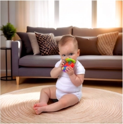 Drie zachte bijtringen met verschillende texturen bieden verlichting bij doorkomende tandjes, terwijl de compacte vorm van de sleutels ideaal is voor kleine handjes. Het speelgoed ondersteunt zo op natuurlijke wijze de fijne motoriek, hand-oogcoördinatie en de eerste grijvaardigheden.