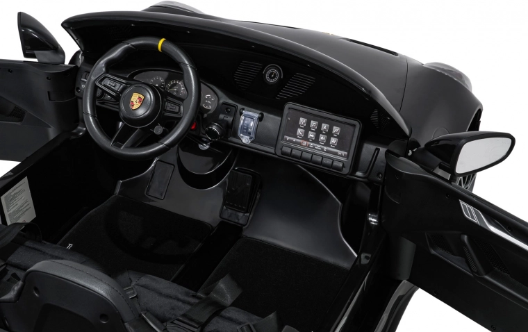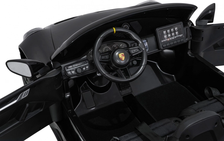 De droom van kleine chauffeurs: een realistische auto in de stijl van de PORSCHE 911 GT3 met twee zitplaatsen, krachtige 24V-aandrijving en een soepele start. EVA-schuimbanden en vering voor en achter zorgen voor comfort op diverse ondergronden, terwijl LED-verlichting en sportieve details de premium uitstraling benadrukken.