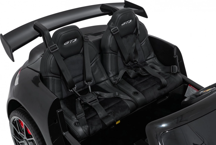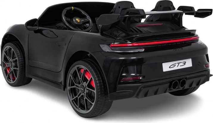 Stijlvolle elektrische kinderauto geïnspireerd op de iconische PORSCHE 911 GT3 met krachtige tweemotorige aandrijving 2×280 W, 24V/10Ah accu, tweepersoons stoel van eco-leer met velours en EVA-schuimbanden voor comfortabel rijden. Voor- en achter LED-verlichting, FM-radio, MP3, Bluetooth en USB en 2,4 GHz afstandsbediening met noodknop Stop voor maximale veiligheid ontbreken niet.