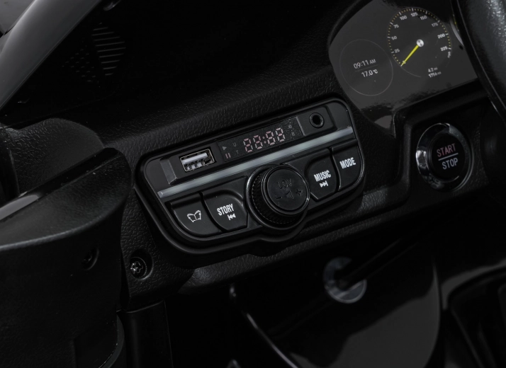 Ouders zullen de 2,4 GHz afstandsbediening met 3 snelheden en noodknop Stop waarderen. Het multimediapaneel met FM-radio, MP3, Bluetooth, AUX en USB zorgt voor plezier bij elke rit. Stoelen van eco-leer met veloursafwerking hebben veiligheidsgordels en drievoudige verstelling voor comfortabel zitten.