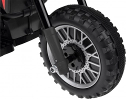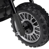 Massieve wielen met dempingsbanden verminderen geluid en trillingen op harde of oneffen ondergrond. De elektrische rem wordt automatisch geactiveerd wanneer het gaspedaal wordt losgelaten, ideaal voor beginnende bestuurders. Eenvoudig opstappen en afstappen stimuleert de zelfstandigheid van het kind en maakt korte én langere ritten makkelijker.