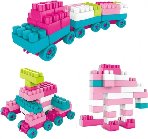 Deze pastelset in tinten roze, wit, turquoise en lichtgroen maakt elke kleine bouwer blij. Kinderen bouwen er eenvoudig huisjes, dieren, voertuigen op wieltjes en originele 3D-constructies mee. De grotere afmetingen van de onderdelen maken vastpakken gemakkelijk en de veilige constructie zonder scherpe randen zorgt voor onbezorgd speelplezier.