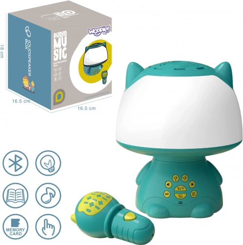 Laat de kinderkamer stralen en tover haar om tot een klein podium met de Woopie-lamp – een schattige kattenluidspreker met RGB-verlichting, Bluetooth 5.0 en een draadloze microfoon. Biedt 360° stereogeluid, 3 helderheidsniveaus, karaokemodus en een stemvervormer met 4 effecten. Tot 6 uur plezier op één lading.