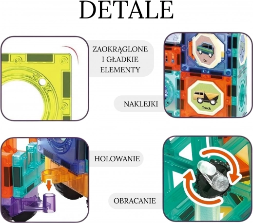 WOOPIE magnetische 3D bouwstenen, 71 stuks. Bouw kastelen en voertuigen, met sterke magneten, gekleurde onderdelen en stickers. Ontwikkelt creativiteit en logica vanaf 3 jaar.