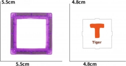 - 8 blauwe vierkanten, 7 rode vierkanten, 9 grijze vierkanten, 7 paarse vierkanten, 9 groene vierkanten, 30 educatieve letterkaarten