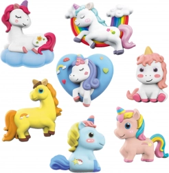 Met deze set gieten kinderen eenvoudig hun eigen eenhoorns, laten ze drogen en schilderen ze vervolgens naar eigen fantasie. Verschillende vormen en houdingen van de figuren maken het mogelijk een unieke collectie te creëren die de kinderkamer siert. De complete accessoires zorgen ervoor dat alles thuis comfortabel en veilig kan worden gedaan.