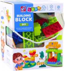 Kleurige bouwset met 100 onderdelen voor kleine makers. Grote, gemakkelijk vast te pakken blokken in basiskleuren stimuleren creativiteit, fijne motoriek en logisch denken. Veilige uitvoering van hoogwaardige kunststof, afgeronde randen en praktische verpakking met handvat voor onderweg.