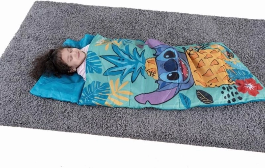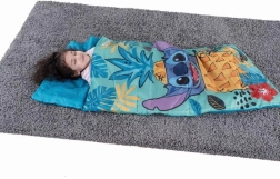 Comfortabele kinder slaapzak met STITCH-motief, ideaal voor logeerpartijtjes, zomerkampen en gezinsuitstapjes. Biedt aangenaam materiaal, praktische afmetingen van 140 × 60 cm en een speels design waar kinderen dol op zullen zijn.