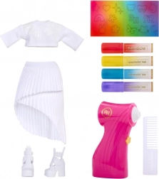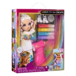 De set bevat een stijlvolle pop met lang wit haar, een beweegbaar lichaam en een volledig witte outfit die klaar is om te kleuren. Breng haar, jurk en schoenen tot leven en werk details af met de stift voor precisie-decor. Een ideaal cadeau voor kinderen die van mode, kleur en creativiteit houden.